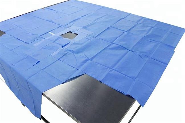 Usage: Place the Lithotomy drape on the lower abdomen, unfold laterally. Next unfold downward,between the patient's legs,exposing the perineal fenestration.Unfold the top of the drape laterallyand then towards the patient's head.